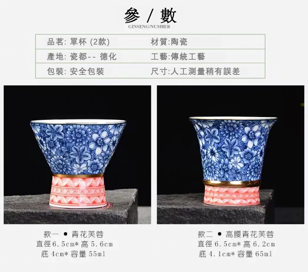 2分鐘前【汀和大福】高白薄胎青花瓷斗笠杯 - 高腰青花芙蓉