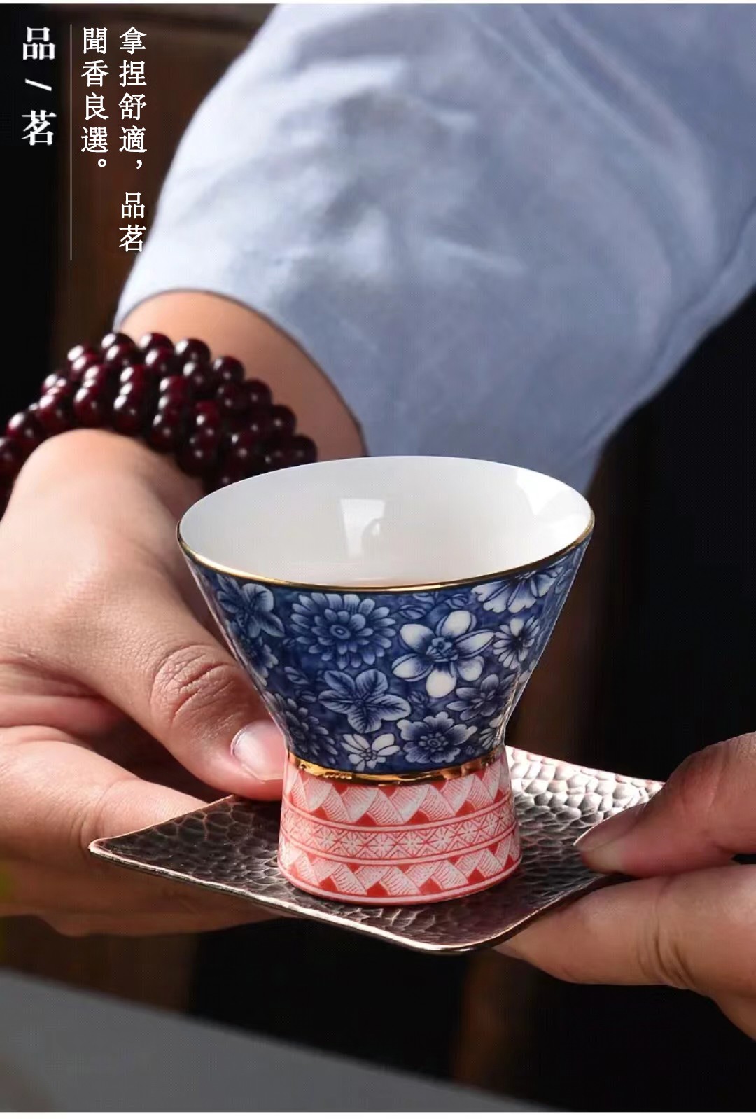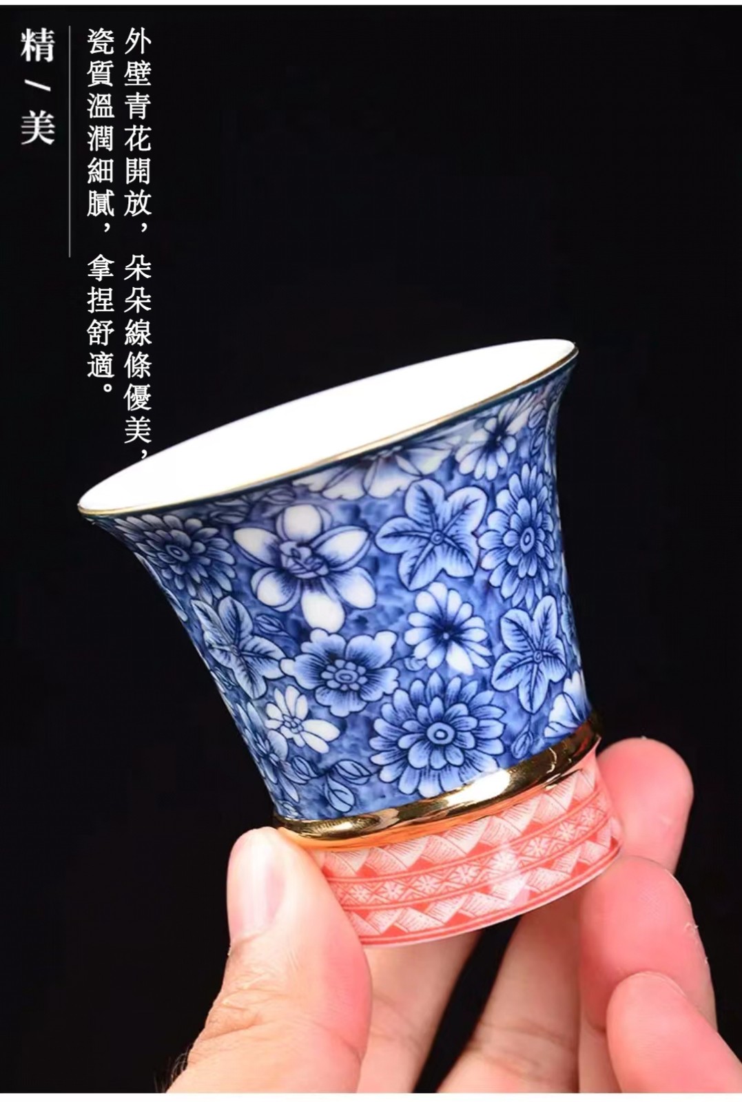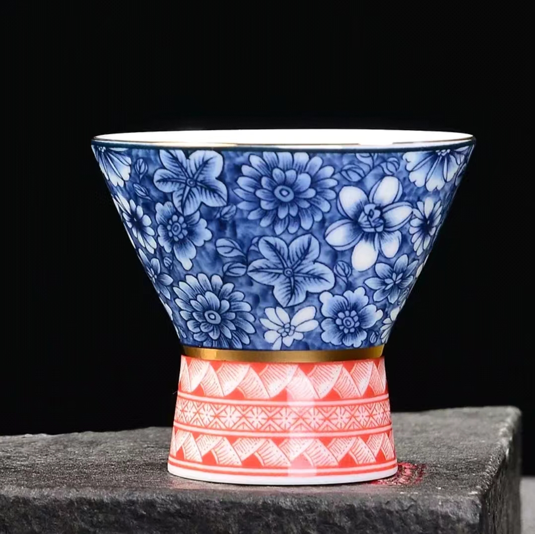 4分鐘前【汀和大福】高白薄胎青花瓷斗笠杯 - 高腰青花芙蓉
