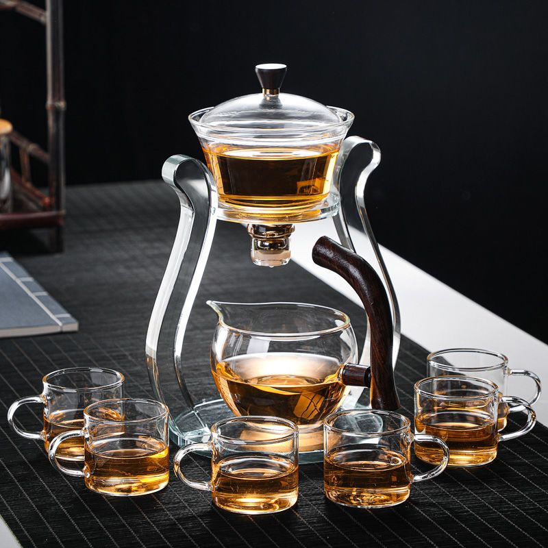 2分鐘前【汀和大福】全自動玻璃功夫茶具套裝【登高望月/楠竹茶架/海洋之心茶架可選】 - 楠竹+6把杯