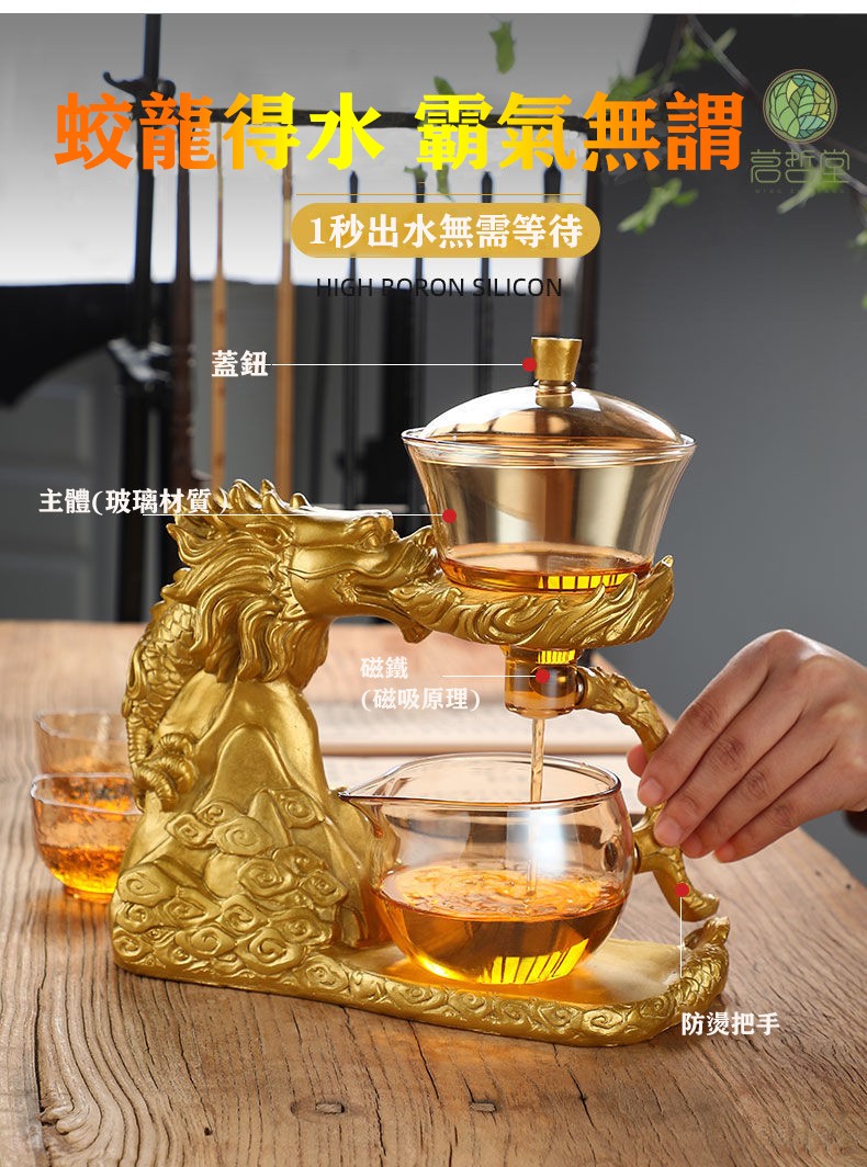 半小時前【汀和大福】聖龍吉翔自動茶具套裝,今日下訂磁吸功夫茶具即送6個茶杯(限30組)