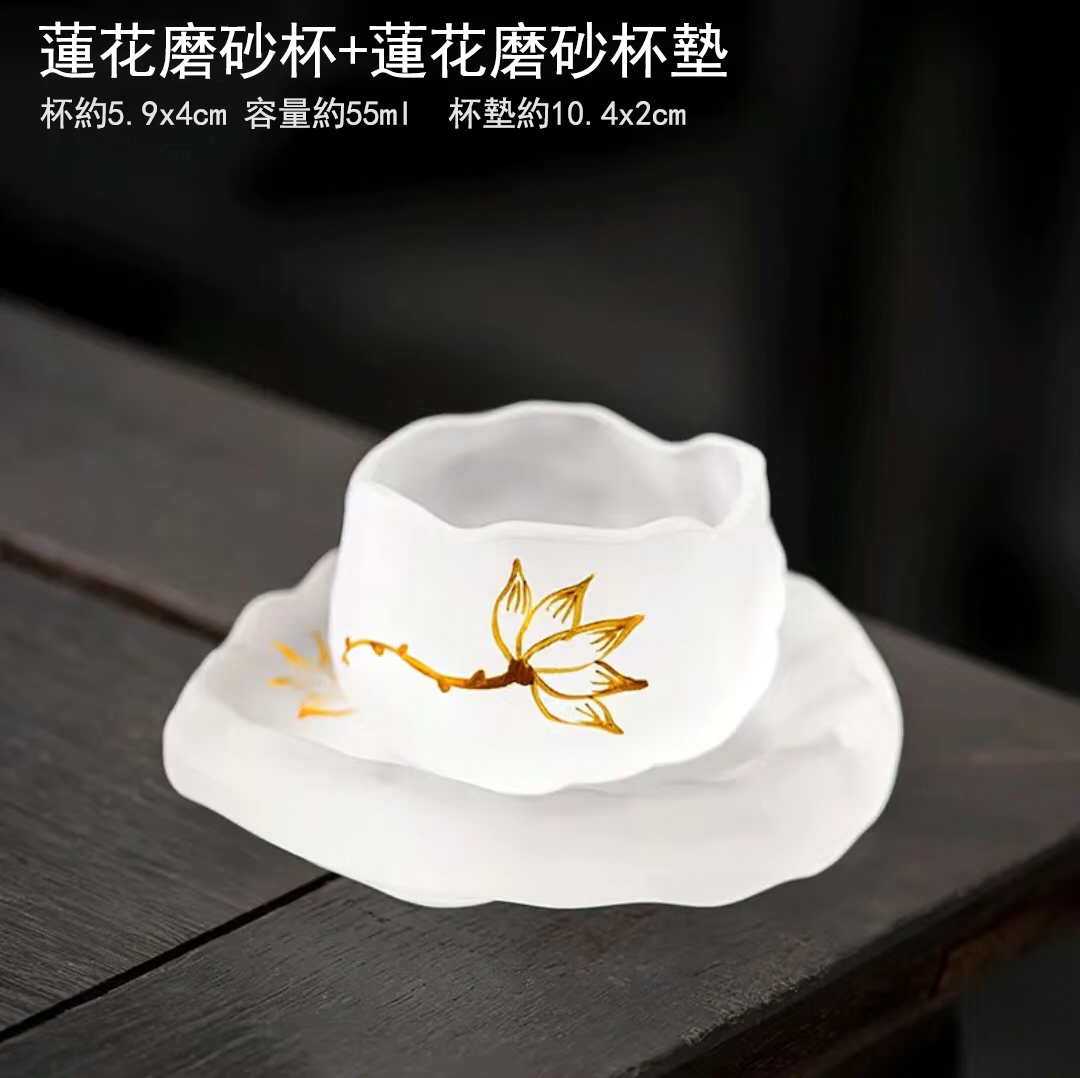 20分鐘前【汀和大福】磨砂玻璃主人杯帶杯墊女士精緻茶杯 - 蓮花磨砂杯+杯墊