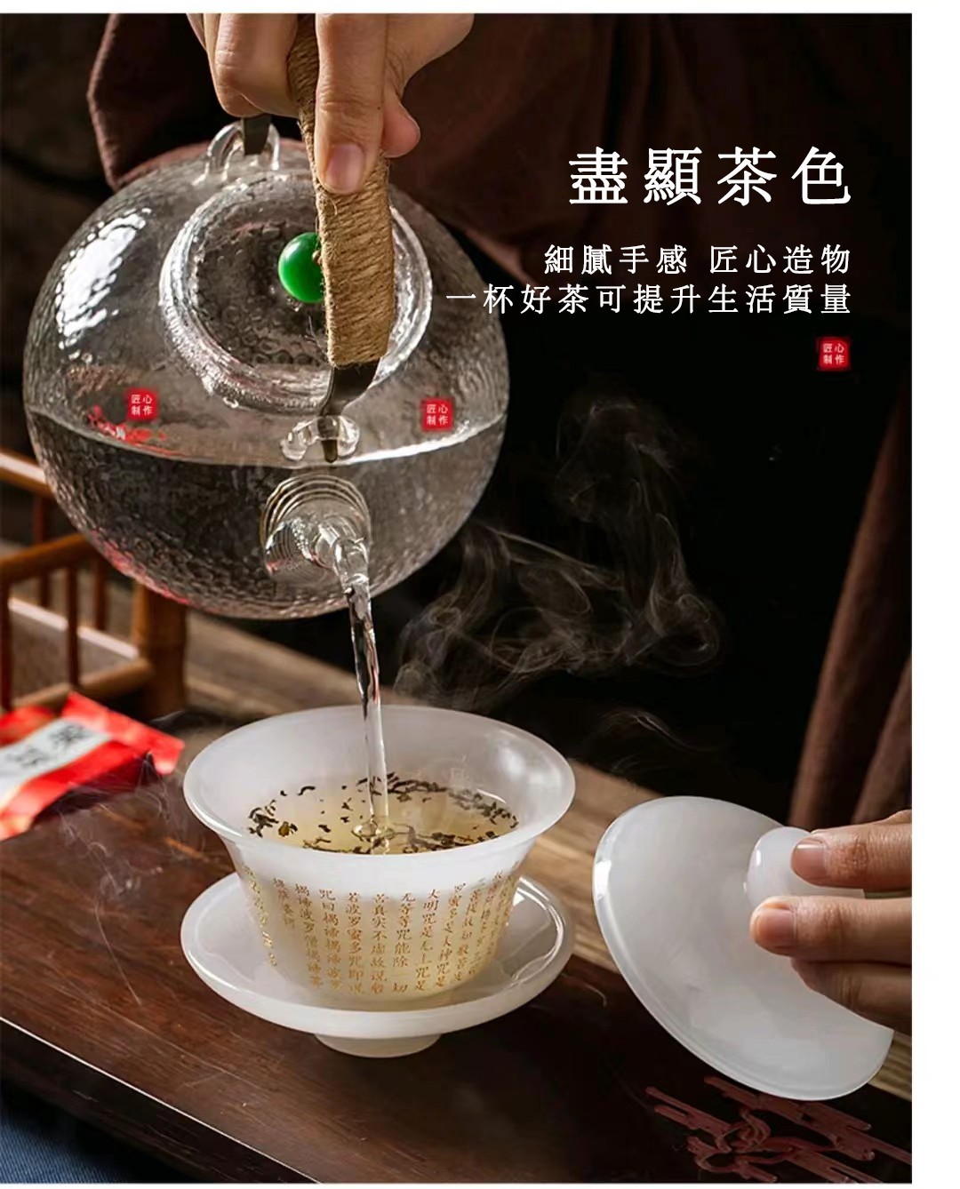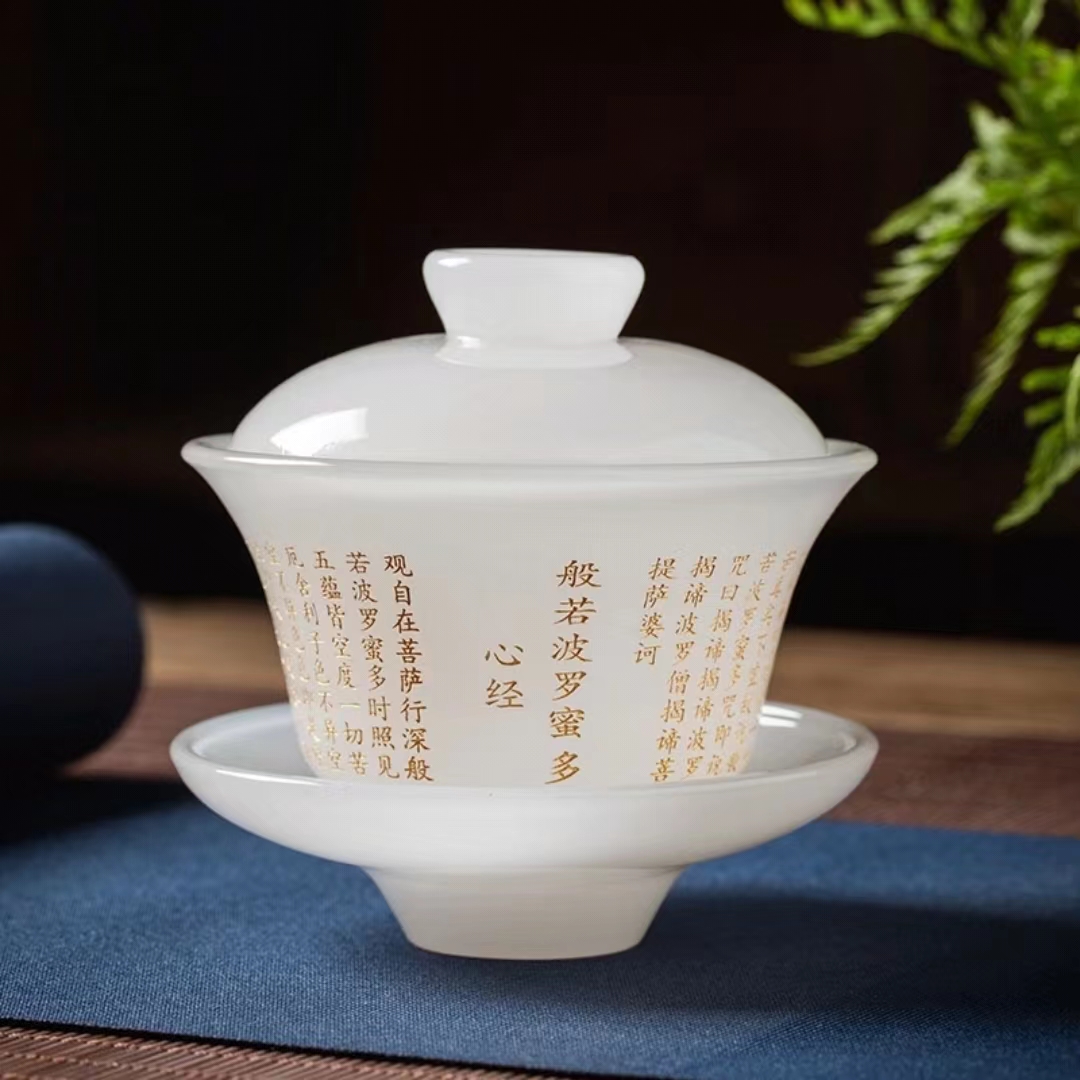 2分鐘前【汀和大福】琉璃心經玉瓷蓋碗 - 琉璃心經玉瓷蓋碗