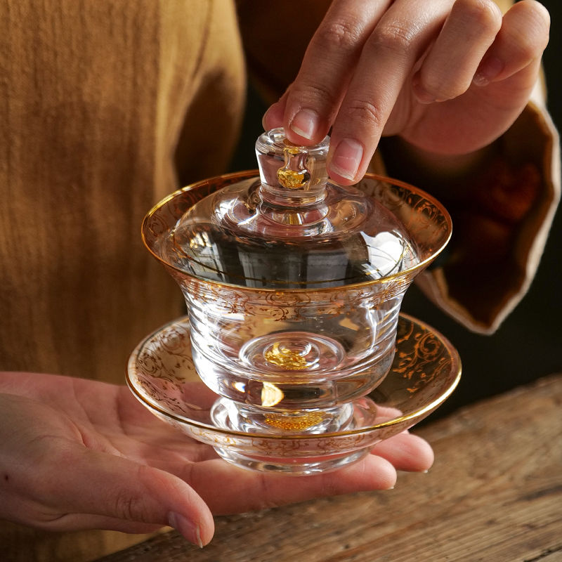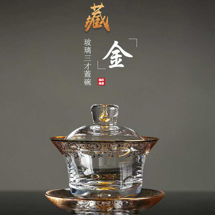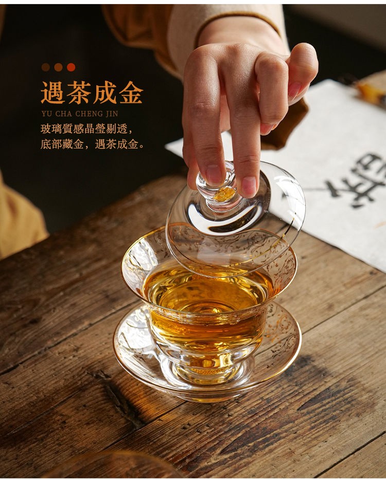 15分鐘前【汀和大福】藏金水晶玻璃三才蓋碗 - 藏金水晶三才蓋碗禮盒裝