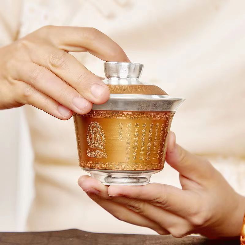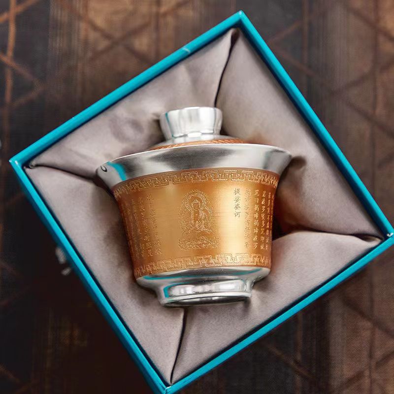 5分鐘前【汀和大福】大師作銅包鎏銀蓋碗 - 百福杯禮盒裝