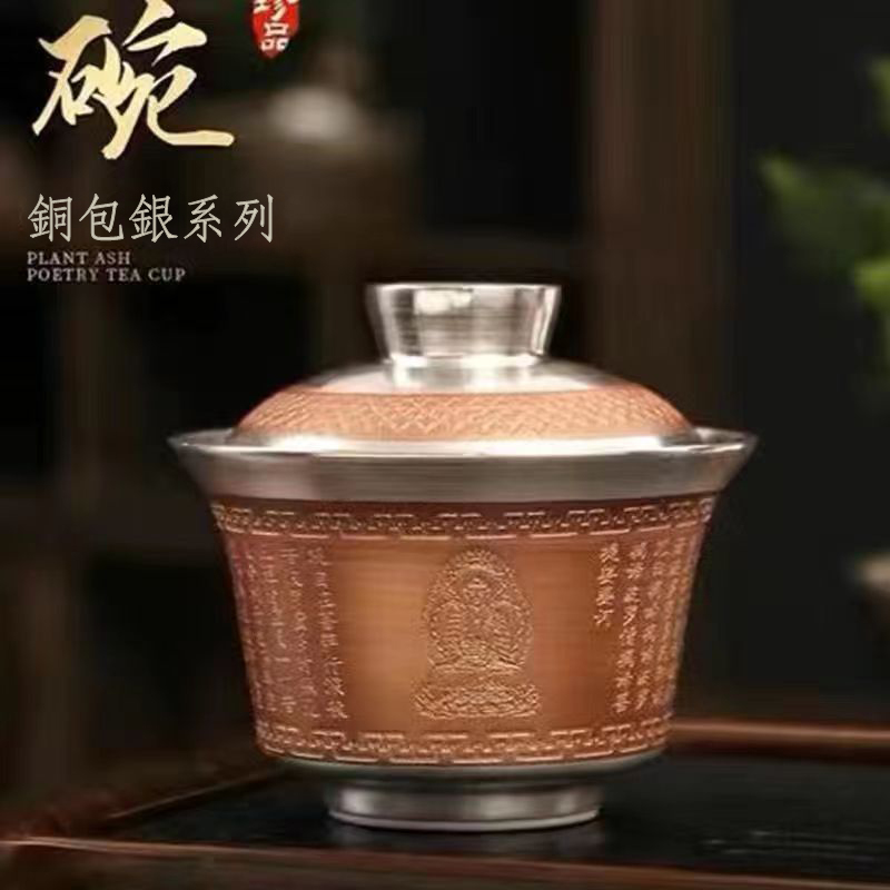 半小時前【汀和大福】大師作銅包鎏銀蓋碗 - 二才蓋碗禮盒裝