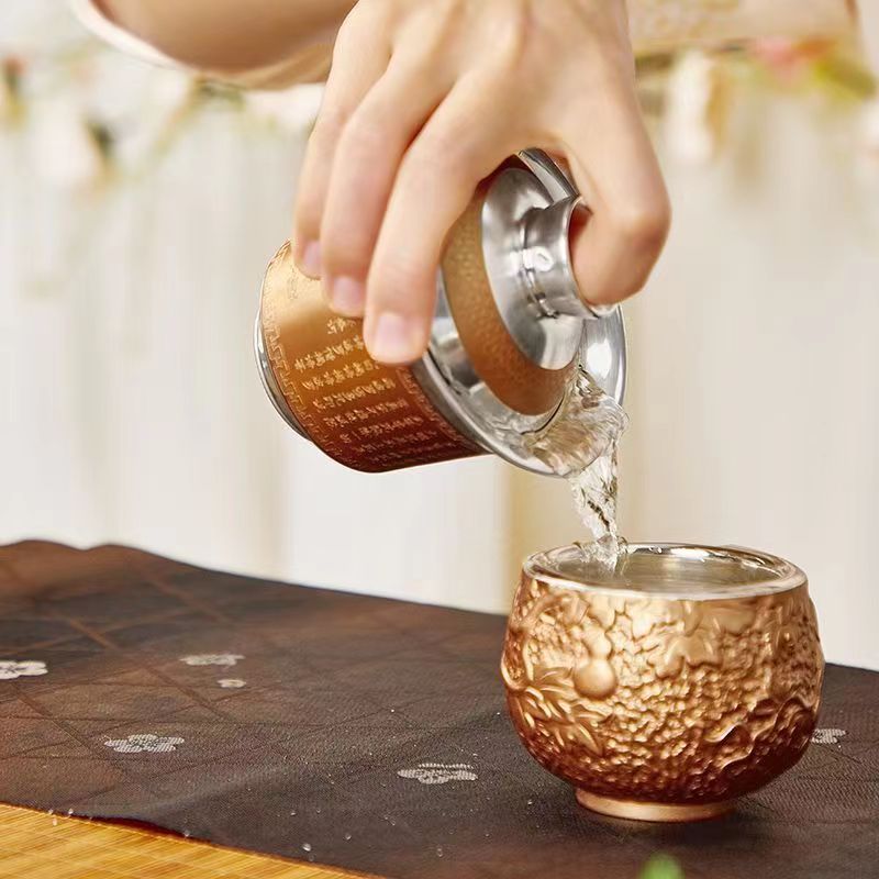 5分鐘前【汀和大福】大師作銅包鎏銀蓋碗 - 五福杯禮盒裝